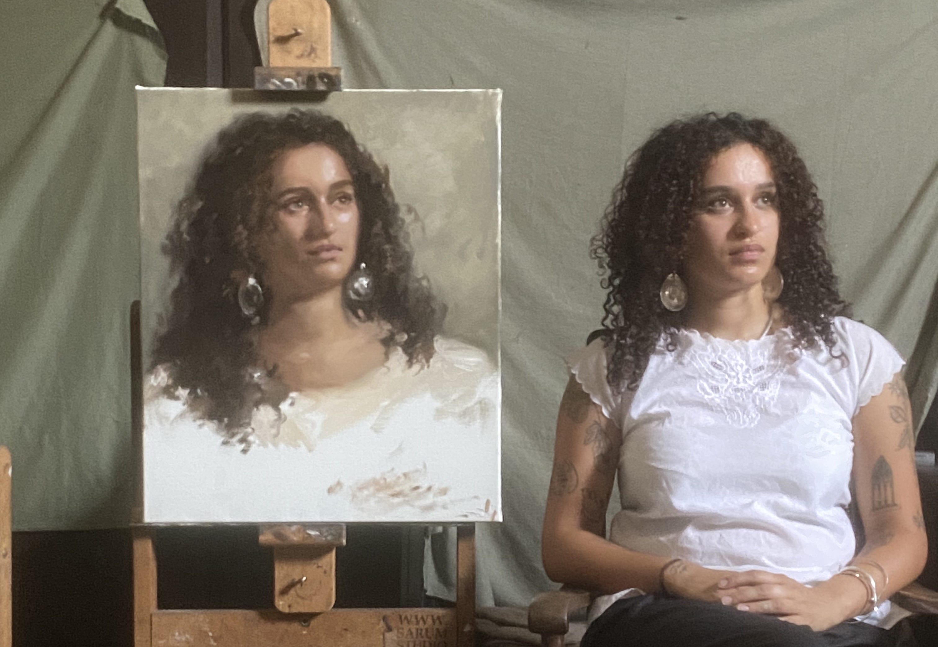 I have never been painted before. What excited me about the notion of being painted was to see myself made concrete through someone else’s eyes. I wanted to know what I looked like. Did I have the faraway look of a dreamer, did I have determined eyes, or perhaps, as I was once told by a portrait photographer, an imperious face? What form would I take in oil?